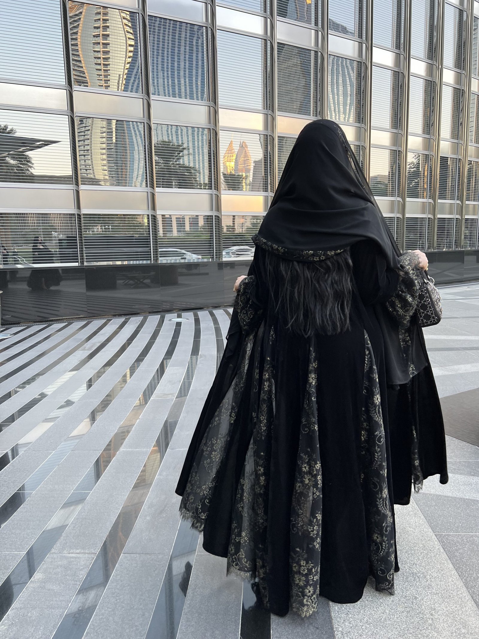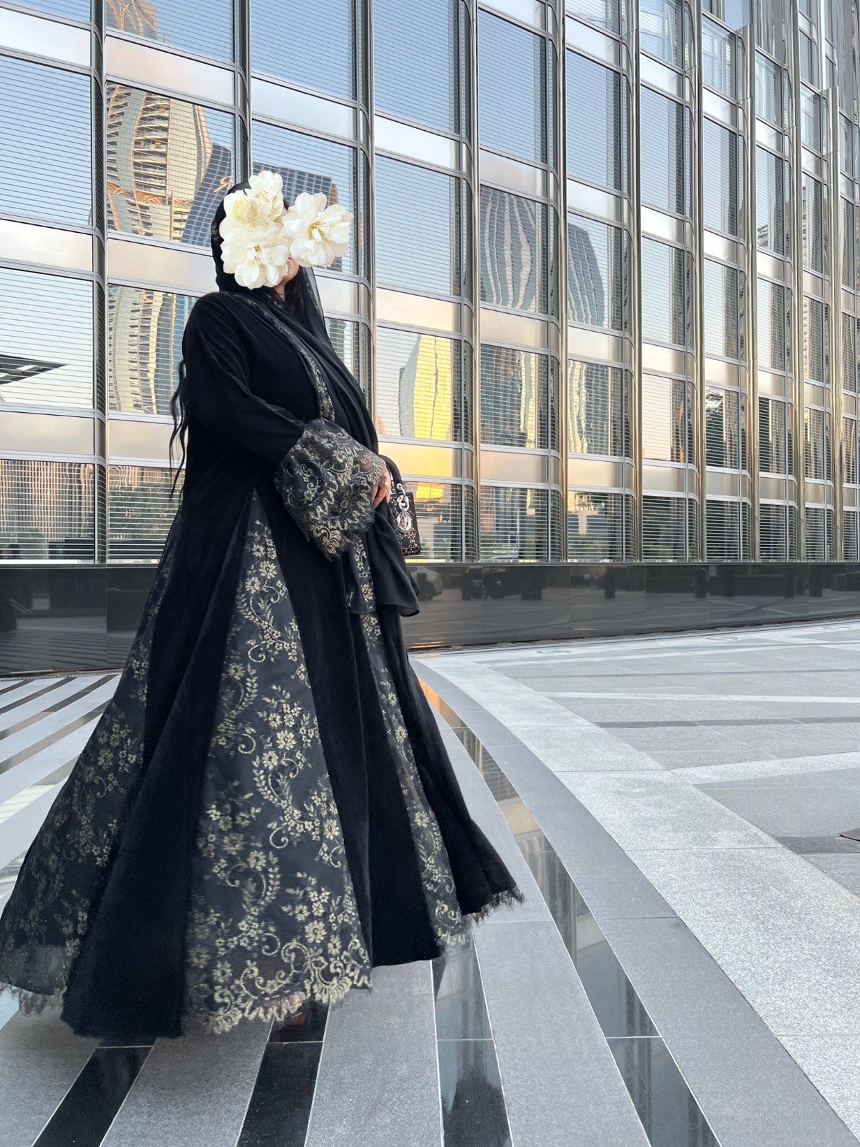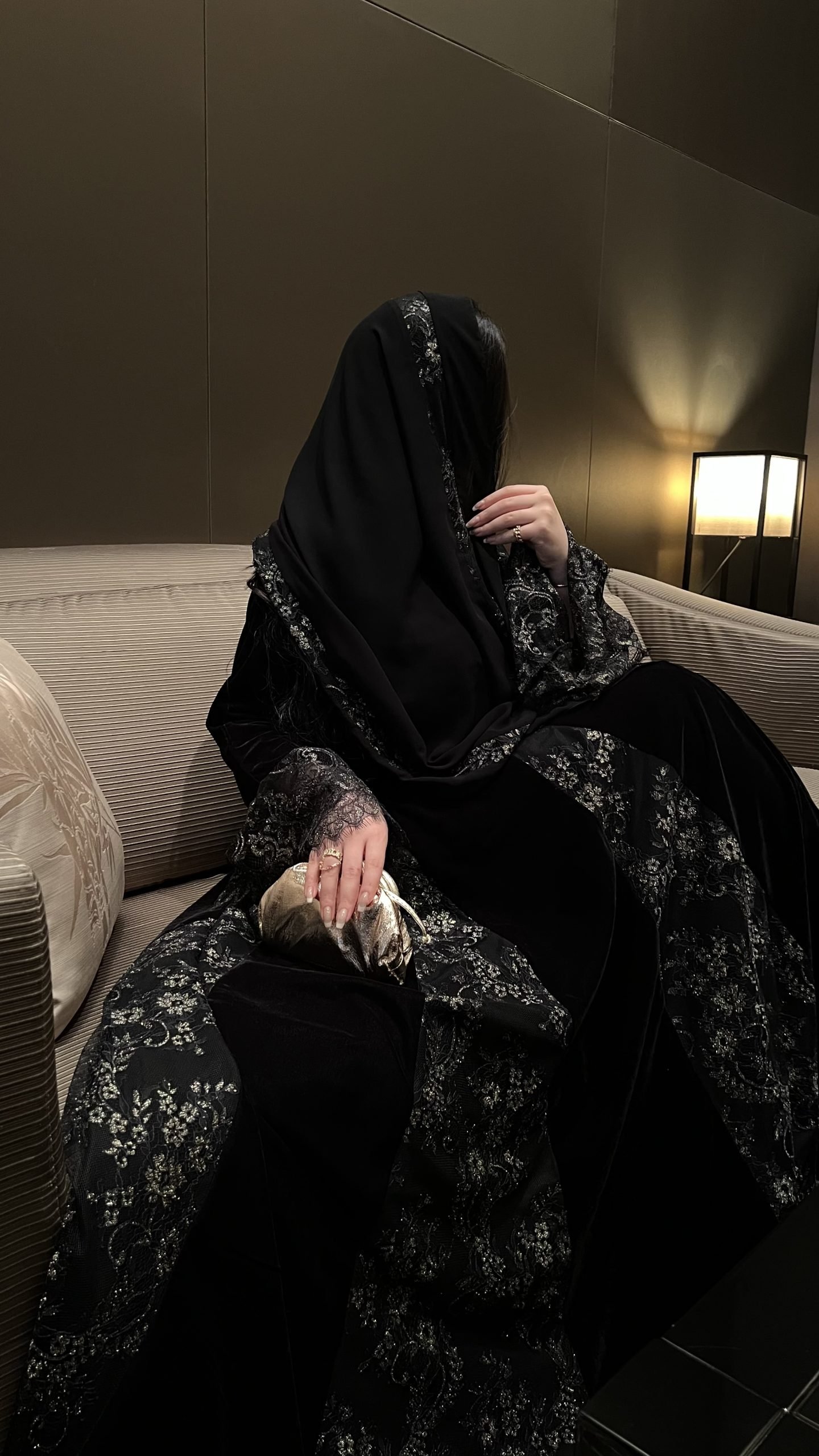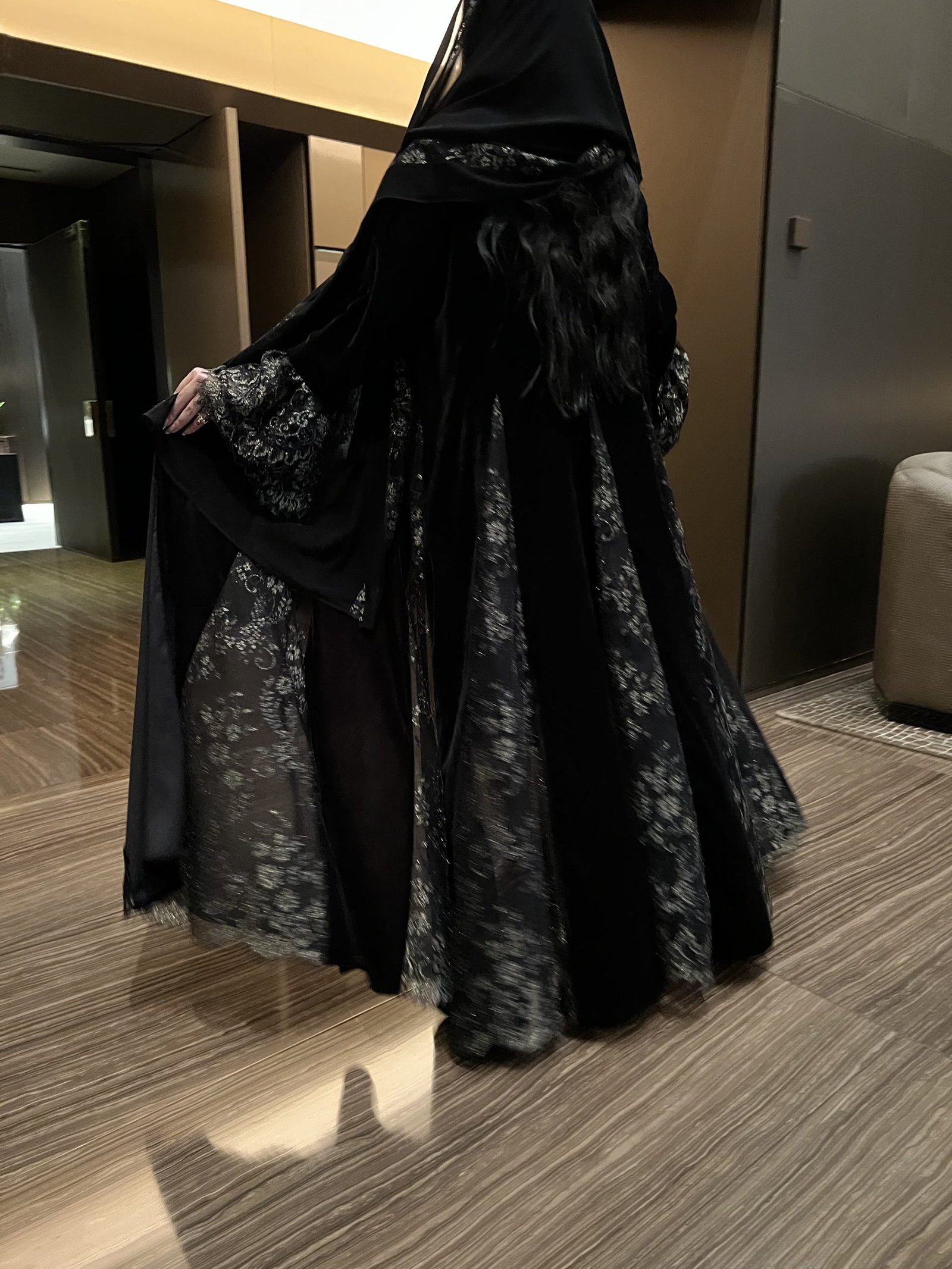 عباية متميزة بقصات الدانتيل الفرنسي الذهبي المميز ✨